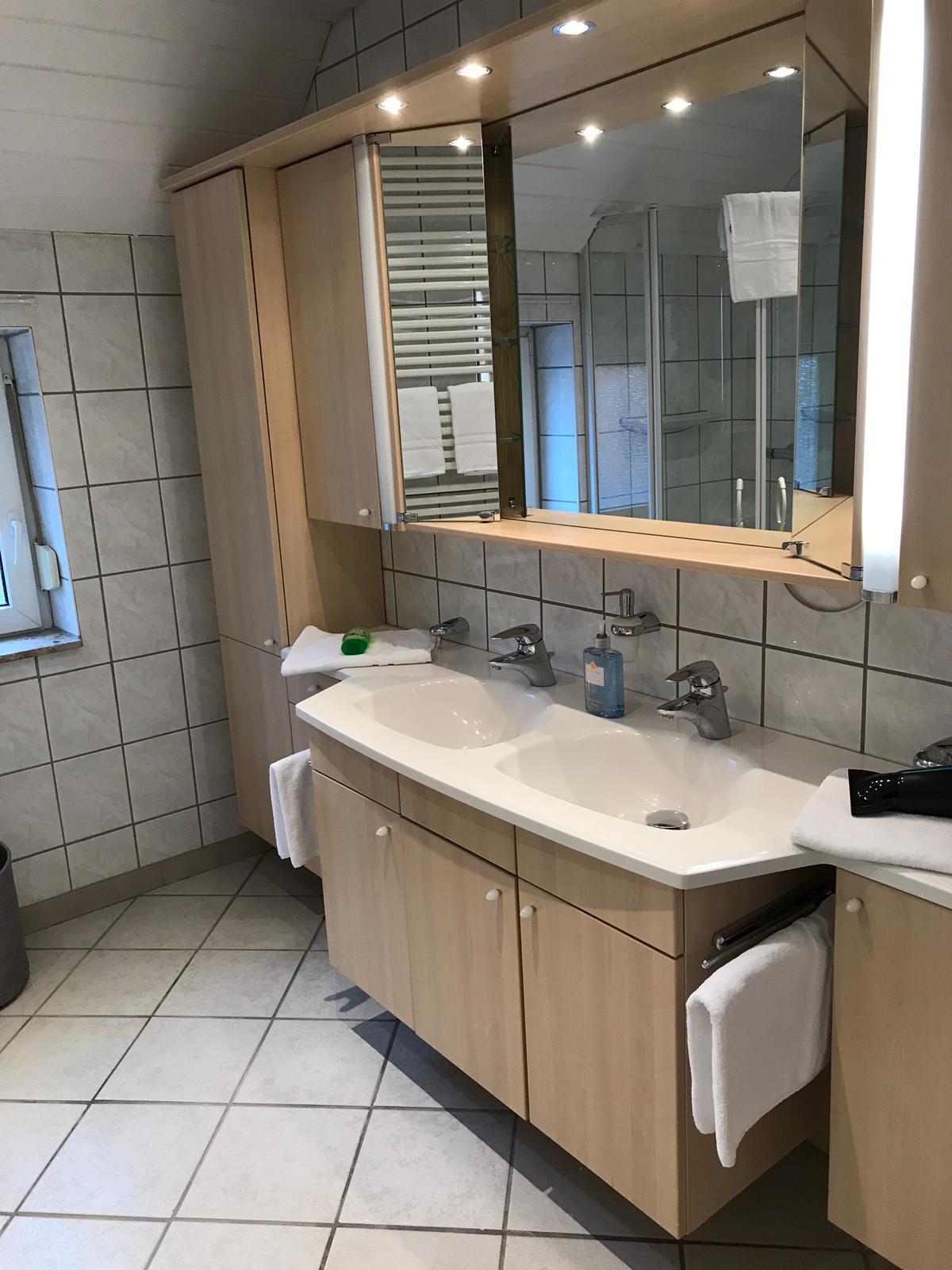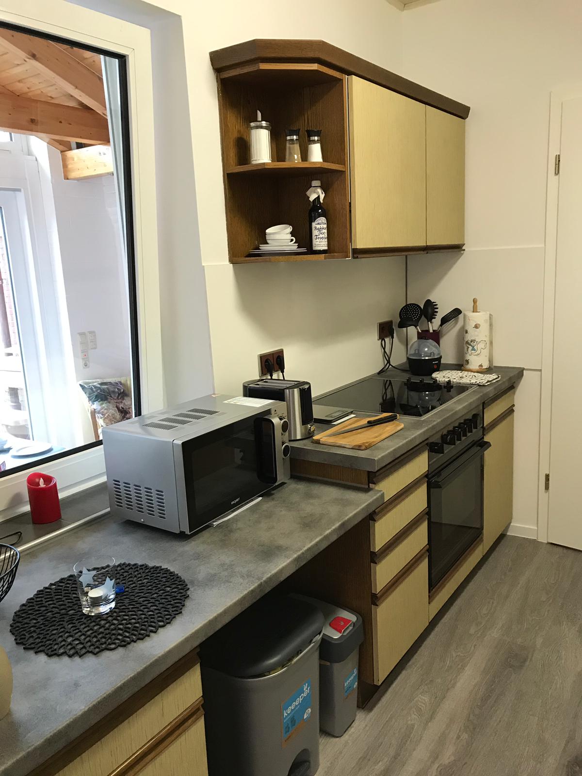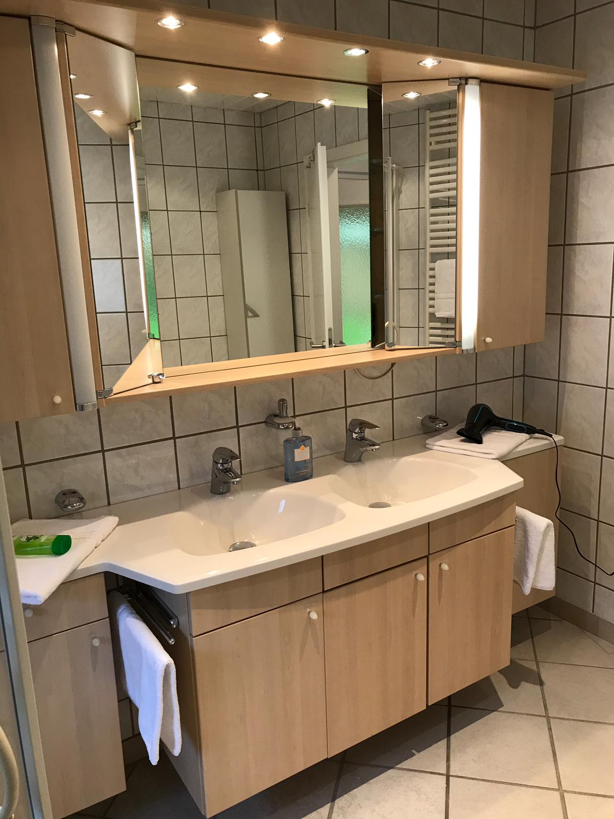 2 Schlafräume, einer mit TV/DVD. Bad mit Dusche und separatem WC (Fön). Küche mit Cerankochfeld, Mikrowelle mit Grillfunktion, Geschirrspüler, Kühlschrank, Kaffeemaschine/Teekocher. Wohnzimmer mit TV/DVD. Fenster mit Rolläden. Gemeinsame Waschküche mit Waschmaschine und Trockner mit Münzgerät. Haustiere erlaubt, Bettwäsche anmietbar, Handtücher anmietbar. Nichtraucher (geschützte "Raucherecke" im Carport).